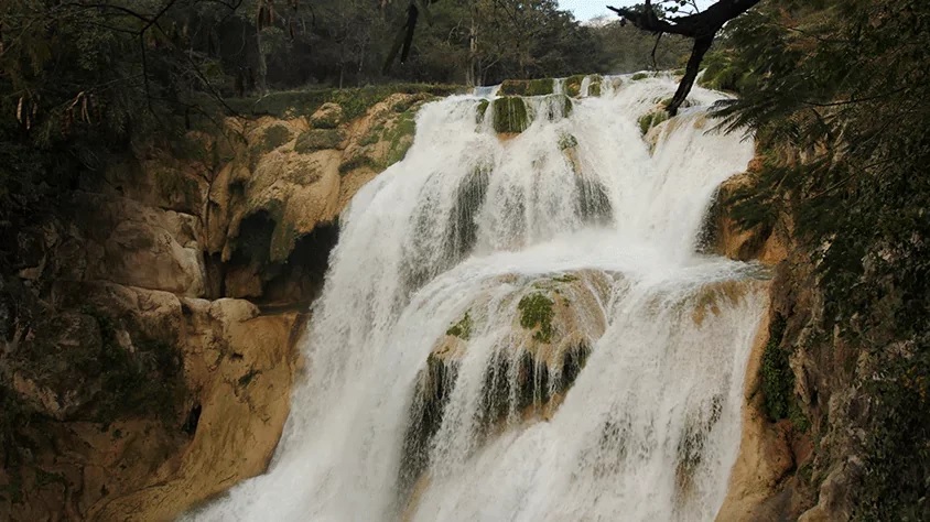 Posteriormente nos dirigimos hacia la Cascada de Minas Viejas, bajaremos 300 escalones y llegaremos a una impresionante caída de 50 metros, formando pozas color azul turquesa, donde podremos entrar al agua y hacer un salto de 3 metros.